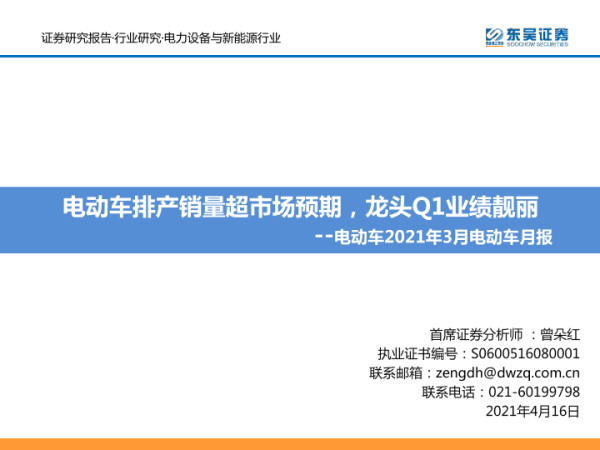 【东吴证券】【20210416】电动车2021年3月电动车月报:电动车排产销量超市场预期,龙头Q1业绩靓丽-49页