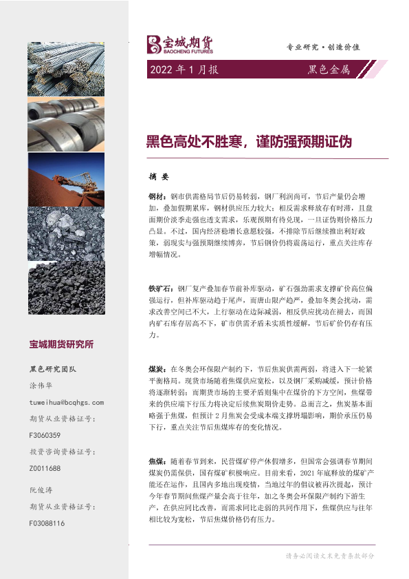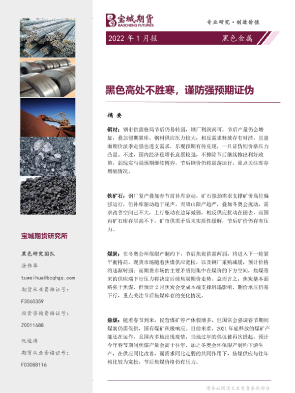 【宝城期货】【20220128】黑色金属2022年1月报:黑色高处不胜寒,谨防强预期证伪-40页