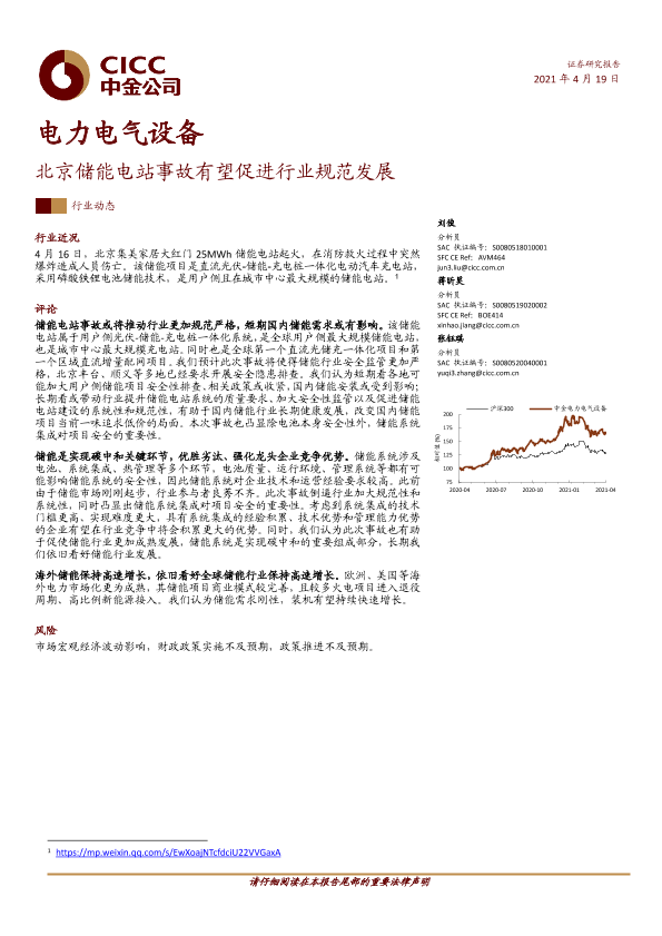 【中金公司】【20210419】电力电气设备:北京储能电站事故有望促进行业规范发展-6页