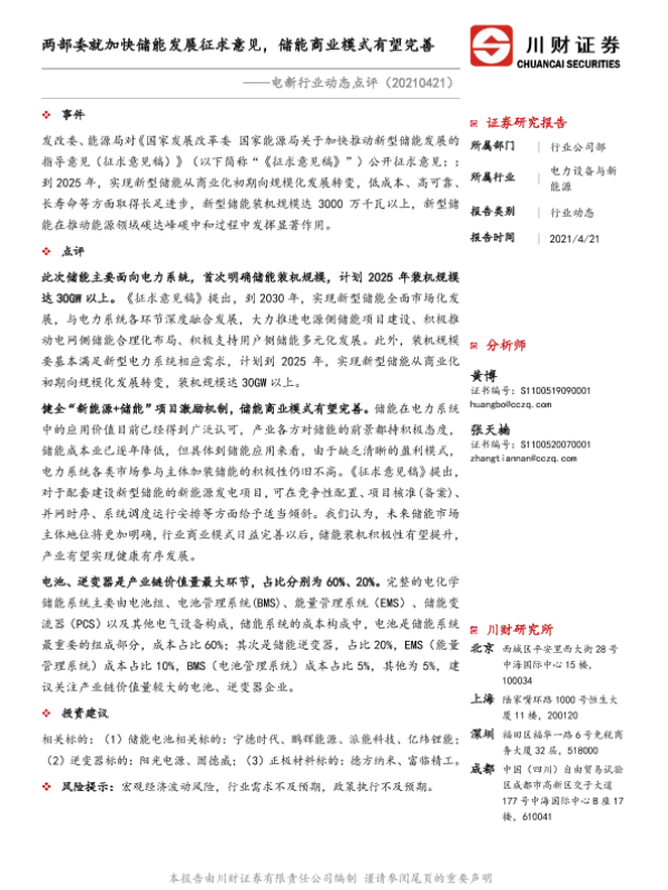 【川财证券】【20210421】两部委就加快储能发展征求意见,储能商业模式有望完善-2页