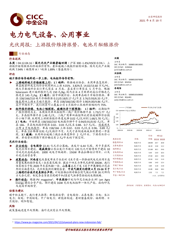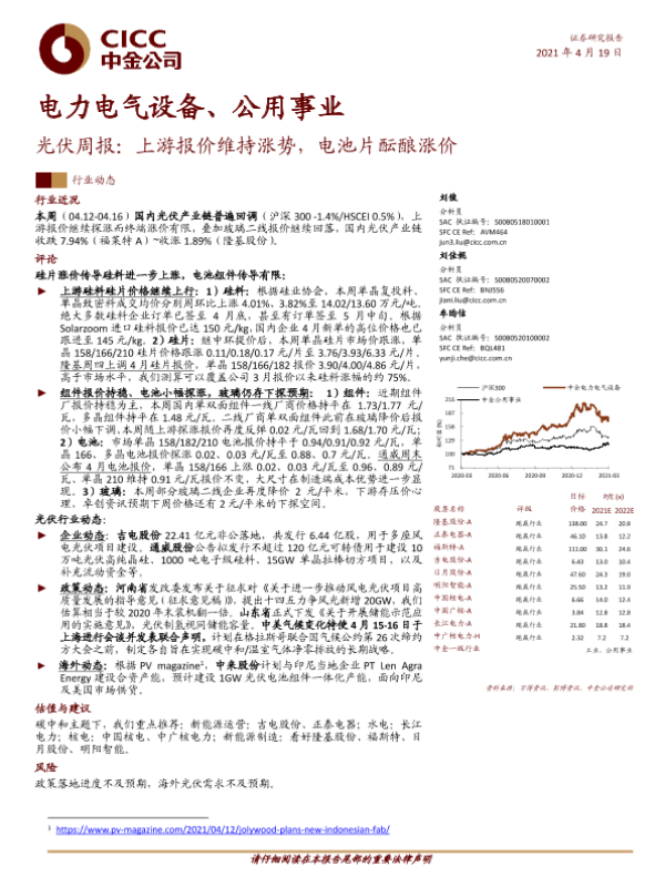 【中金公司】【20210419】20210419-中金公司-光伏周报:上游报价维持涨势,电池片酝酿涨价-10页