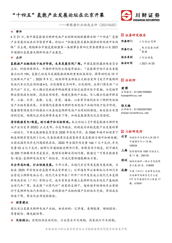 【川财证券】【20210420】“十四五”氢能产业发展论坛在北京开幕-2页