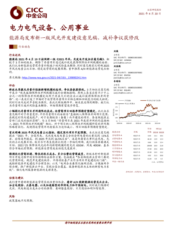【中金公司】【20210420】能源局发布新一版风光开发建设意见稿,减补争议获修改-8页