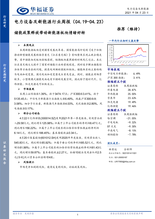 【华福证券】【20210423】电力设备及新能源行业周报:储能政策释放带动新能源板块情绪好转-6页