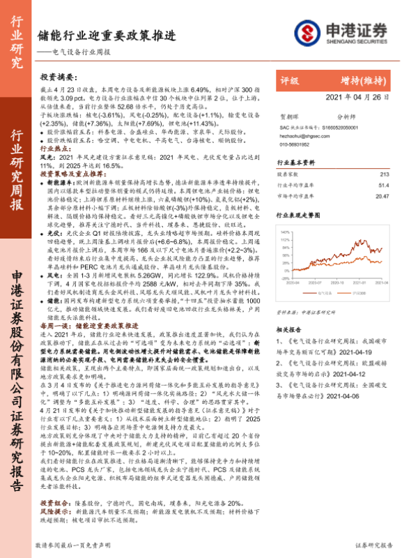 【申港证券】【20210426】电气设备行业周报:储能行业迎重要政策推进-45页