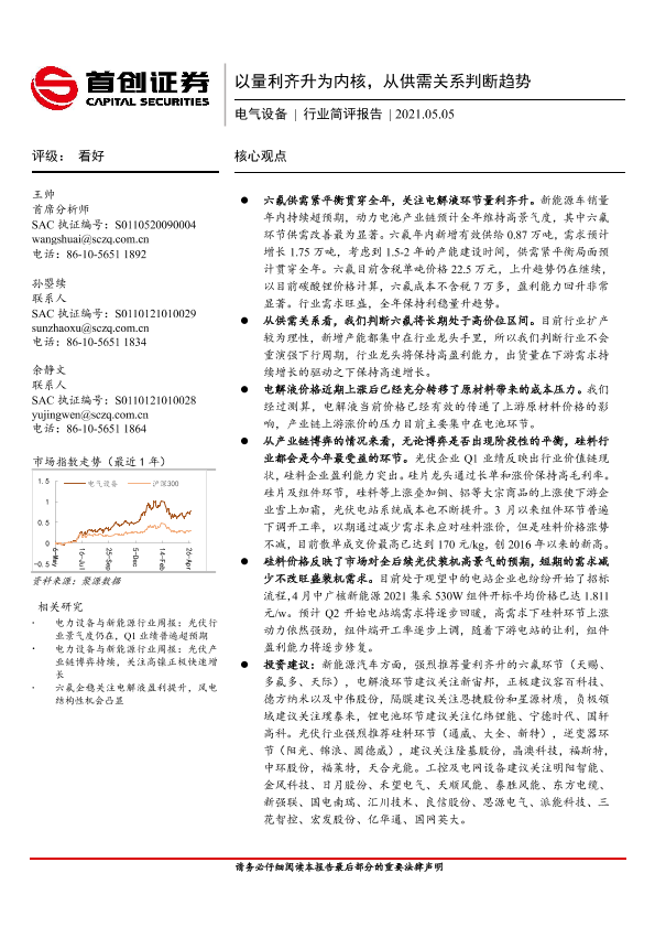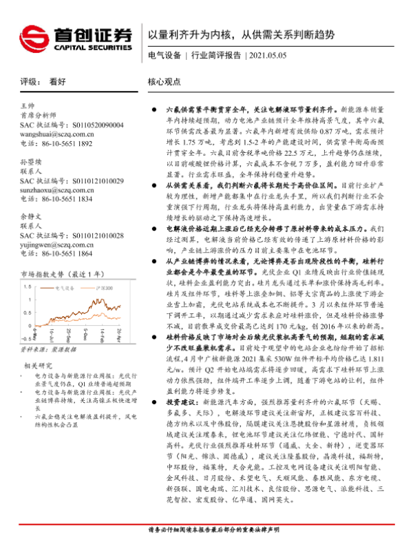 【首创证券】【20210505】20210505-首创证券-电气设备行业简评报告:以量利齐升为内核,从供需关系判断趋势-17页