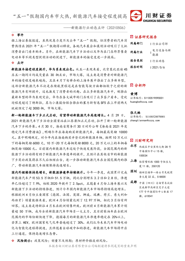 【川财证券】【20210506】“五一”假期国内车市火热,新能源汽车接受程度提高-2页