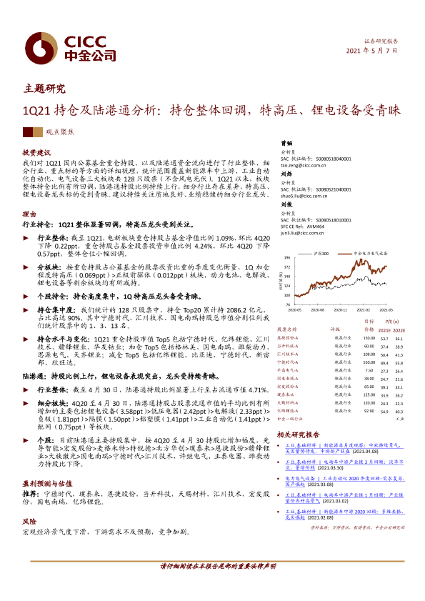 【中金公司】【20210507】1Q21持仓及陆港通分析:持仓整体回调,特高压、锂电设备受青睐-16页