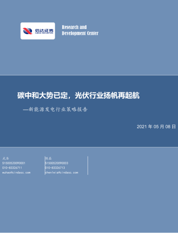 【信达证券】【20210508】碳中和大势已定,光伏行业扬帆再起航-32页