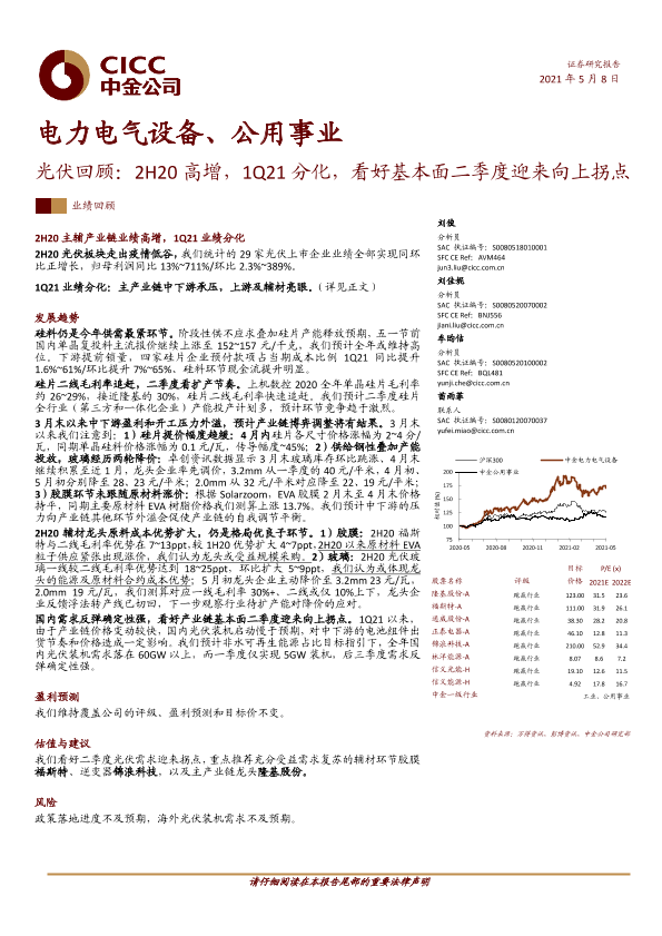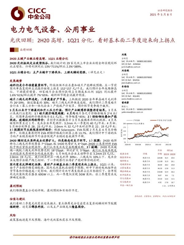 【中金公司】【20210508】电力电气设备、公用事业光伏回顾:2H20高增,1Q21分化,看好基本面二季度迎来向上拐点-9页