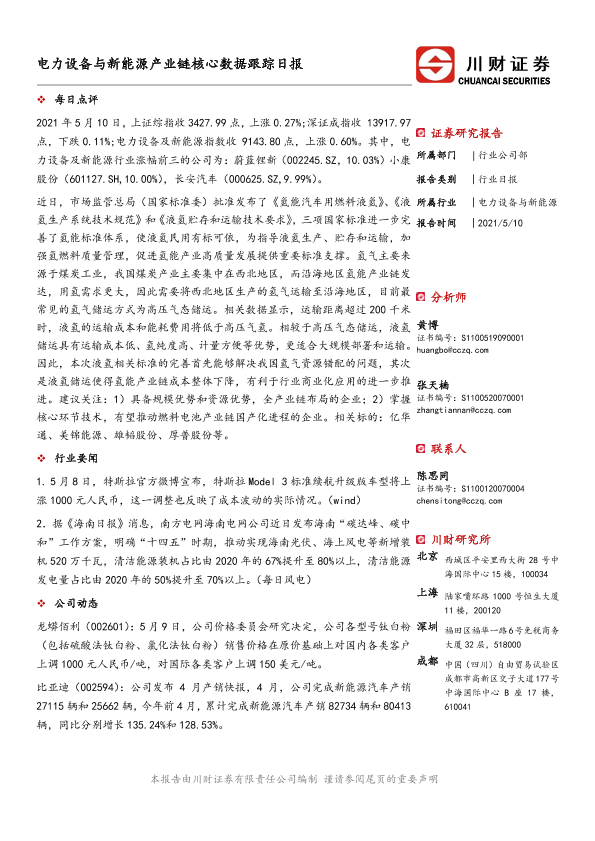 【川财证券】【20210510】电力设备与新能源产业链核心数据跟踪日报-4页