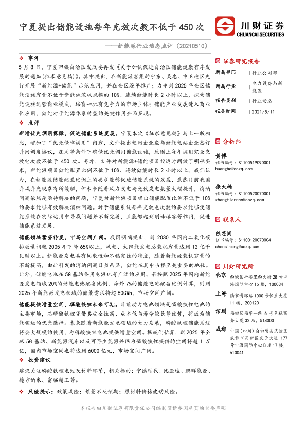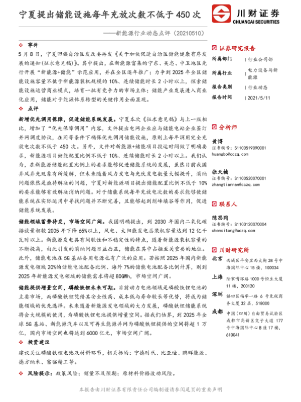 【川财证券】【20210511】新能源行业动态点评:宁夏提出储能设施每年充放次数不低于450次-2页