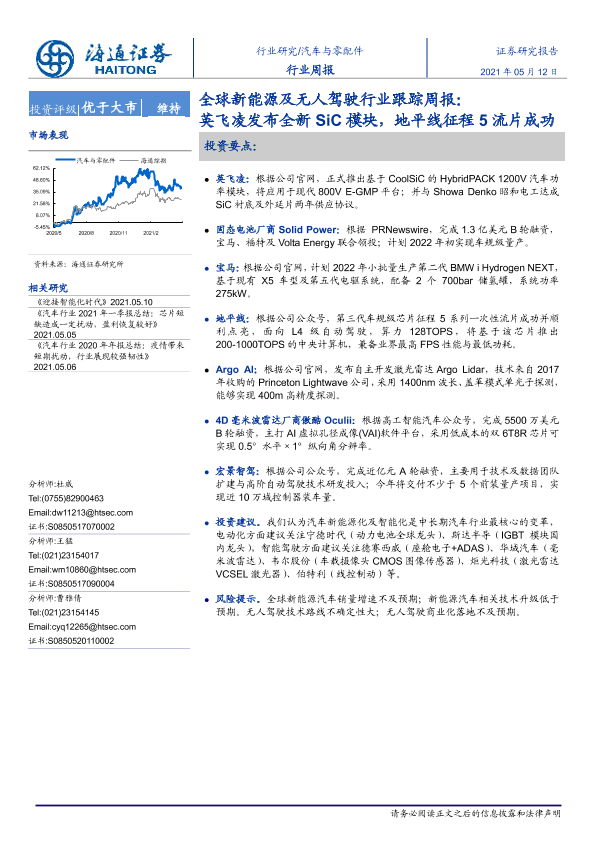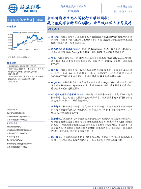 【海通证券】【20210512】全球新能源及无人驾驶行业跟踪周报:英飞凌发布全新SiC模块,地平线征程5流片成功-2页