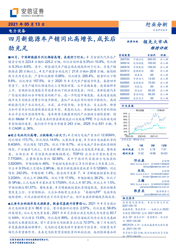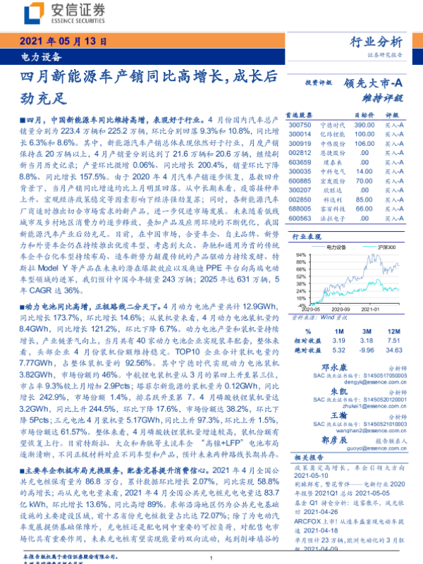 【安信证券】【20210513】四月新能源车产销同比高增长,成长后劲充足-19页