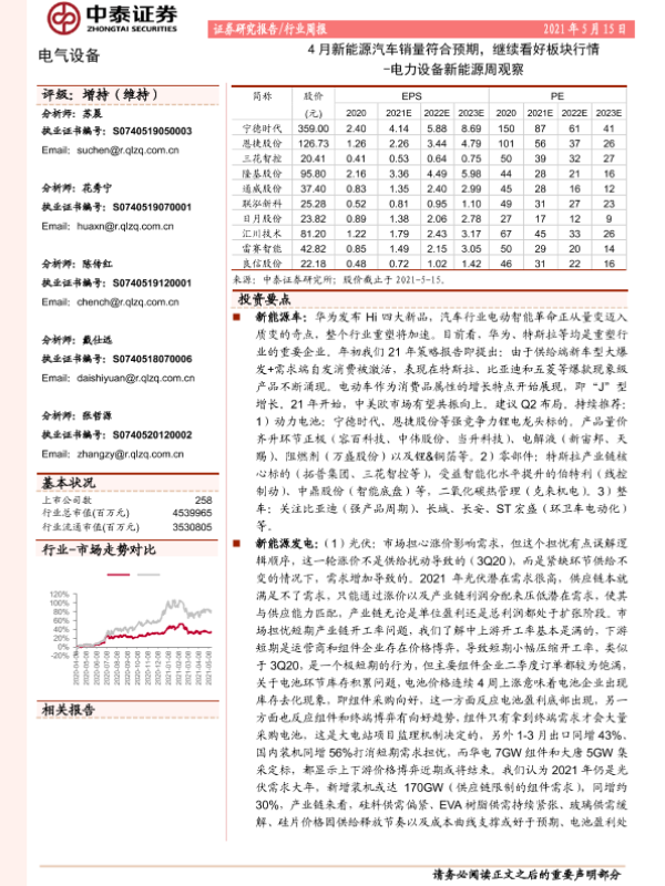 【中泰证券】【20210515】4月新能源汽车销量符合预期,继续看好板块行情-20页