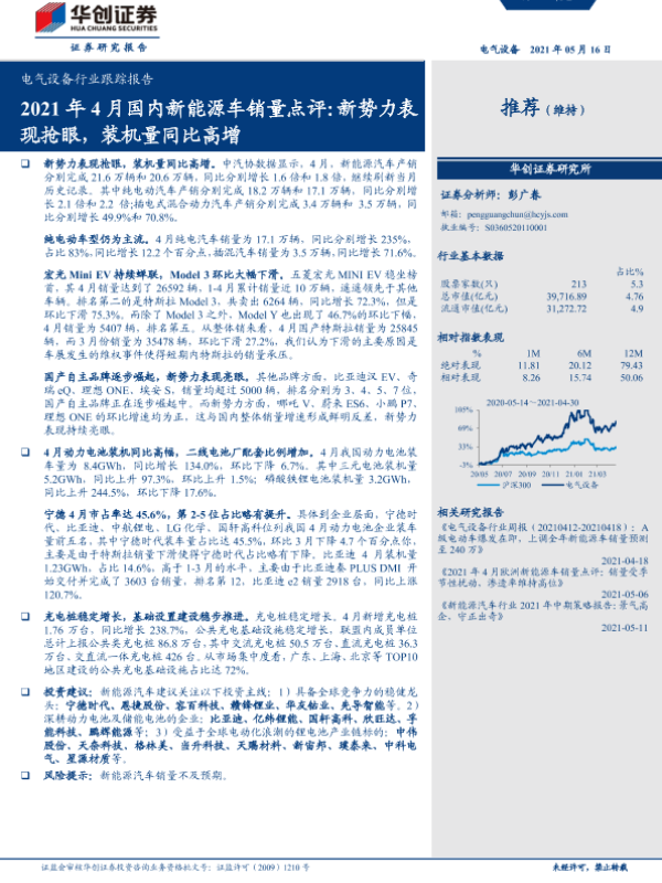 【华创证券】【20210516】2021年4月国内新能源车销量点评:新势力表现抢眼,装机量同比高增-8页