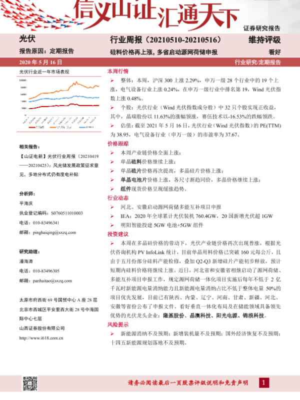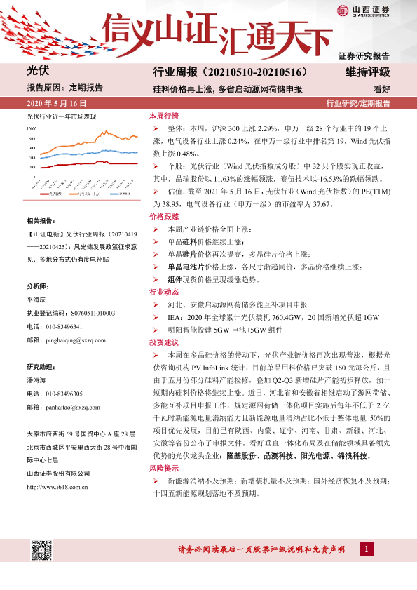 【山西证券】【20210516】20210516-山西证券-光伏行业周报:硅料价格再上涨,多省启动源网荷储申报-10页