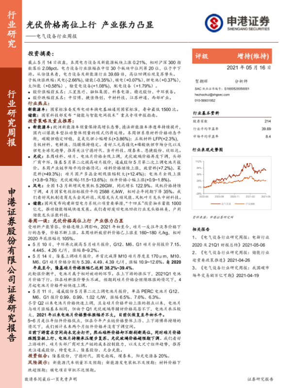 【申港证券】【20210516】电气设备行业周报:光伏价格高位上行 产业张力凸显-46页