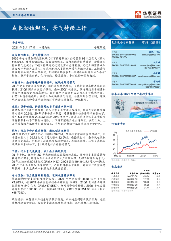 【华泰证券】【20210517】电力设备与新能源行业专题研究:成长韧性彰显,景气持续上行-33页