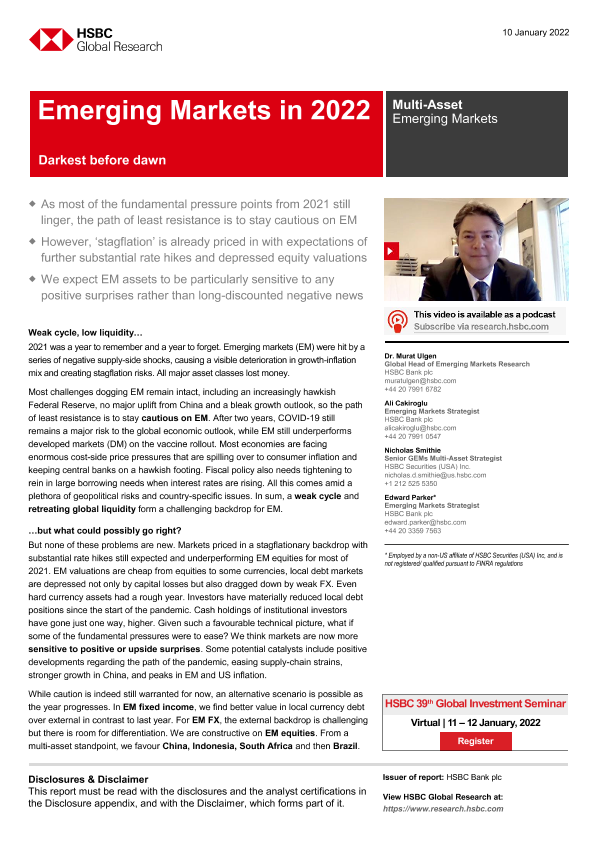 【HSBC Bank plc】【20220110】HSBC-新兴市场投资策略-2022年展望:黎明前最黑暗-40页