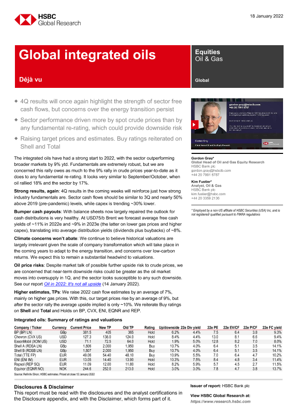 【HSBC Bank plc】【20220118】HSBC-全球石油与天然气行业-全球综合石油-39页