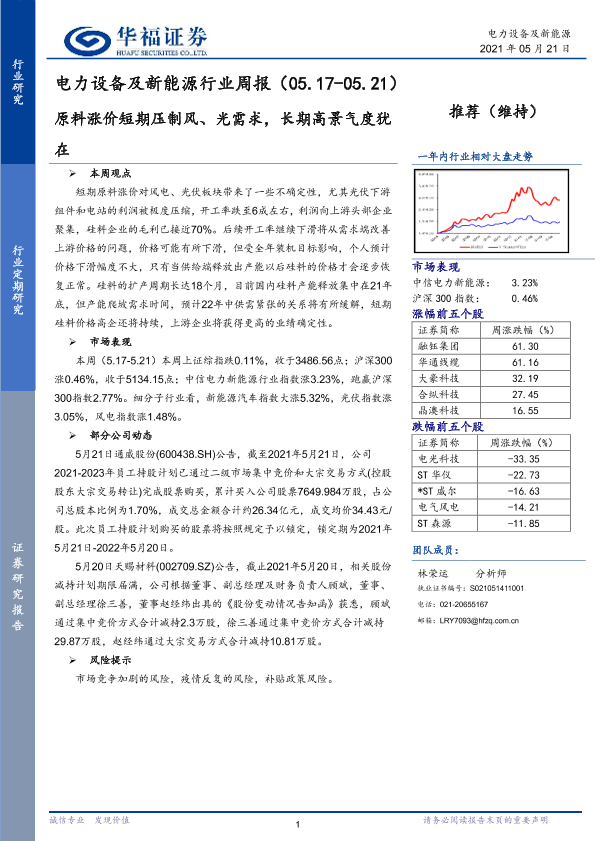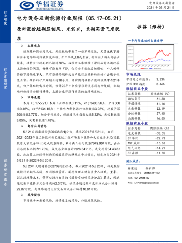 【华福证券】【20210521】电力设备及新能源行业周报:原料涨价短期压制风、光需求,长期高景气度犹在-6页