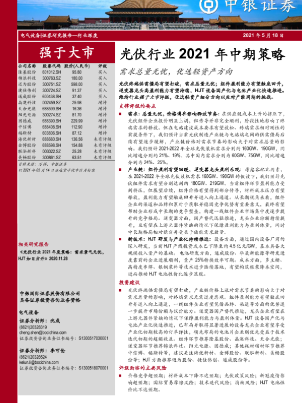 【中银证券】【20210518】光伏行业2021年中期策略:需求总量无忧,优选轻资产方向-42页