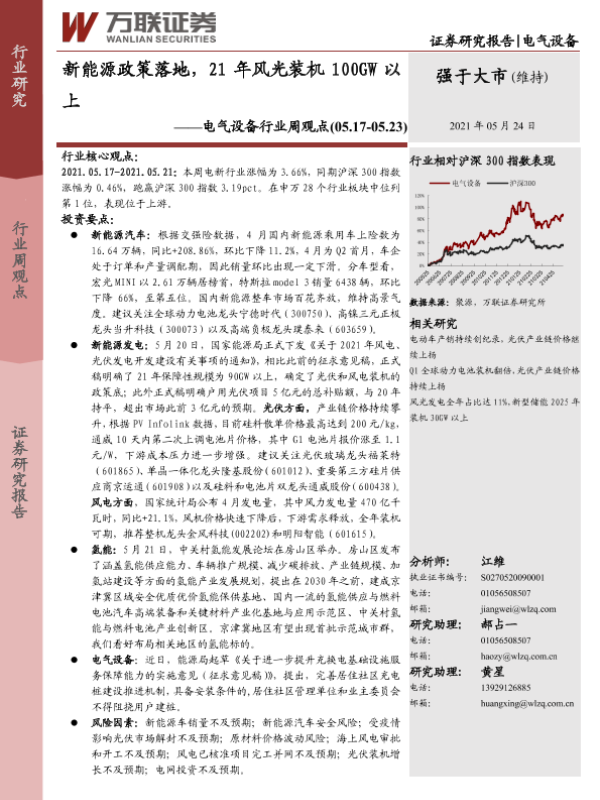 【万联证券】【20210524】20210524-万联证券-电气设备行业周观点:新能源政策落地,21年风光装机100GW以上-11页