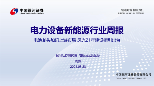【银河证券】【20210523】电力设备新能源行业周报:电池龙头加码上游布局,风光21年建设指引出台-39页