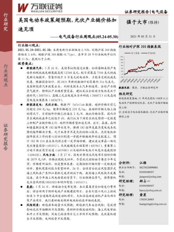 【万联证券】【20210531】美国电动车政策超预期,光伏产业链价格加速见顶-11页