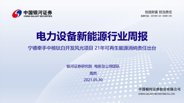 【银河证券】【20210530】电力设备新能源行业周报:宁德牵手中核钛白开发风光项目 21年可再生能源消纳责任出台-38页