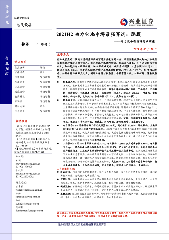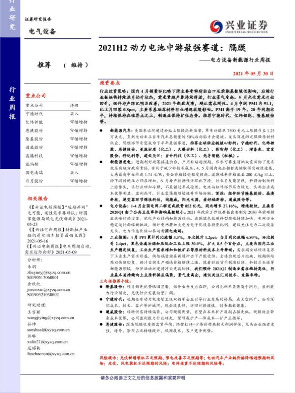 【兴业证券】【20210530】2021H2动力电池中游最强赛道:隔膜-32页