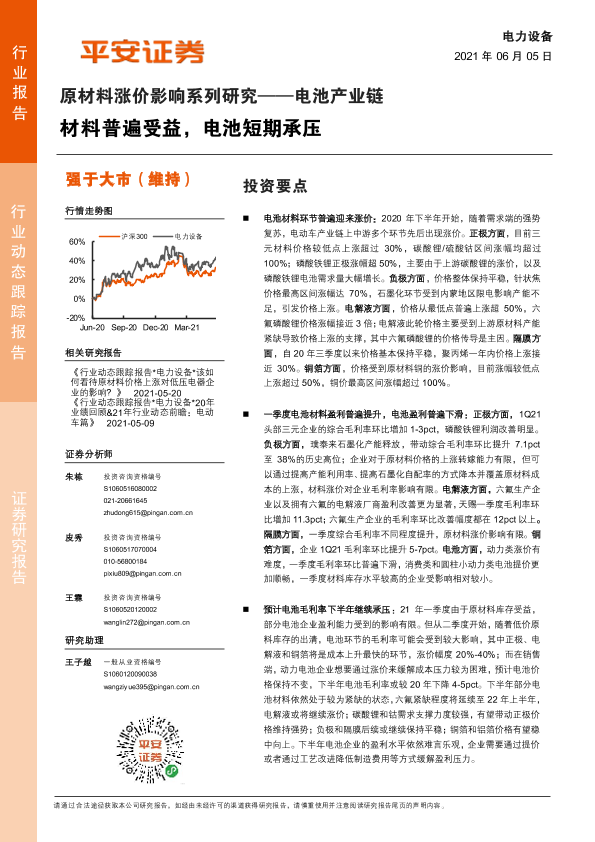 【平安证券】【20210605】原材料涨价影响系列研究——电池产业链:材料普遍受益,电池短期承压-13页