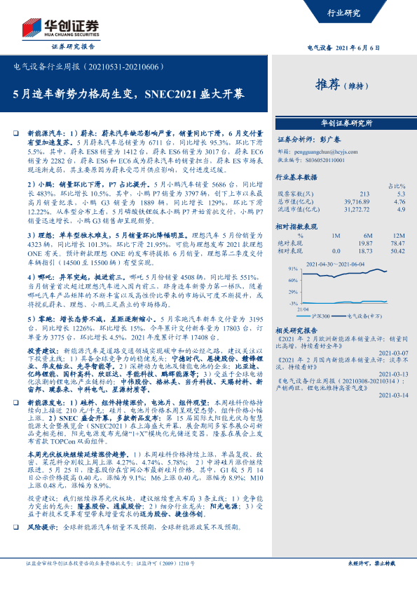 【华创证券】【20210606】电气设备行业周报:5月造车新势力格局生变,SNEC2021盛大开幕-18页