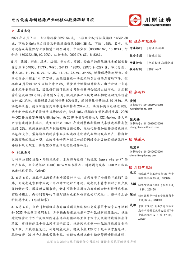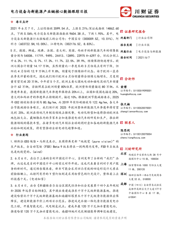 【川财证券】【20210607】电力设备与新能源产业链核心数据跟踪日报-5页
