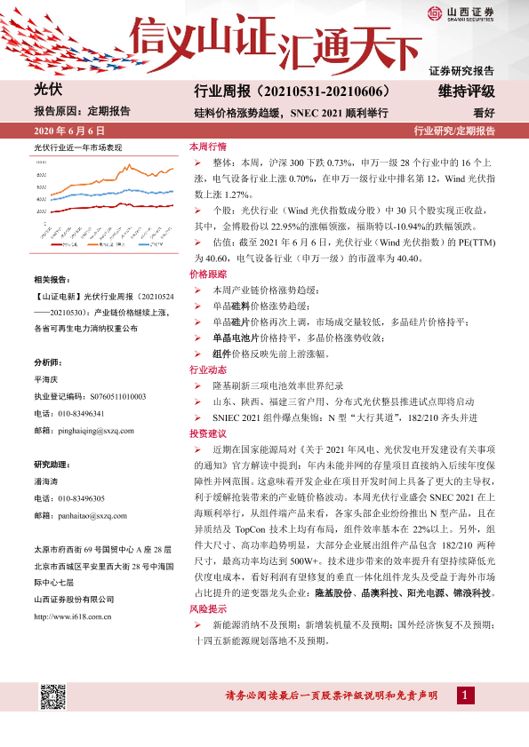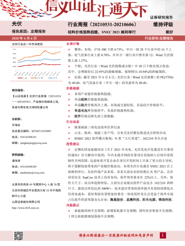 【山西证券】【20210606】光伏行业周报:硅料价格涨势趋缓,SNEC 2021顺利举行-10页