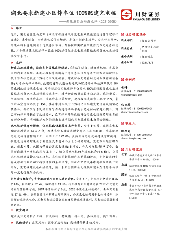 【川财证券】【20210608】湖北要求新建小区停车位100%配建充电桩-2页