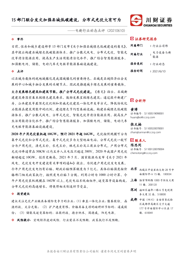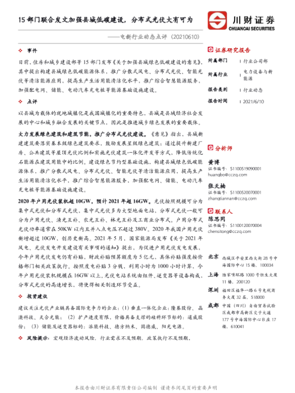 【川财证券】【20210610】15部门联合发文加强县城低碳建设,分布式光伏大有可为-2页