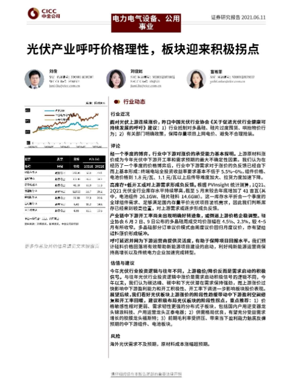 【中金公司】【20210611】光伏产业呼吁价格理性,板块迎来积极拐点-9页