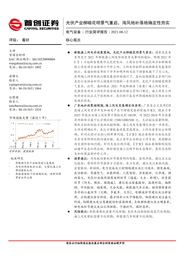 【首创证券】【20210612】20210612-首创证券-电气设备行业简评报告:光伏产业柳暗花明景气重启,海风地补落地确定性夯实-17页