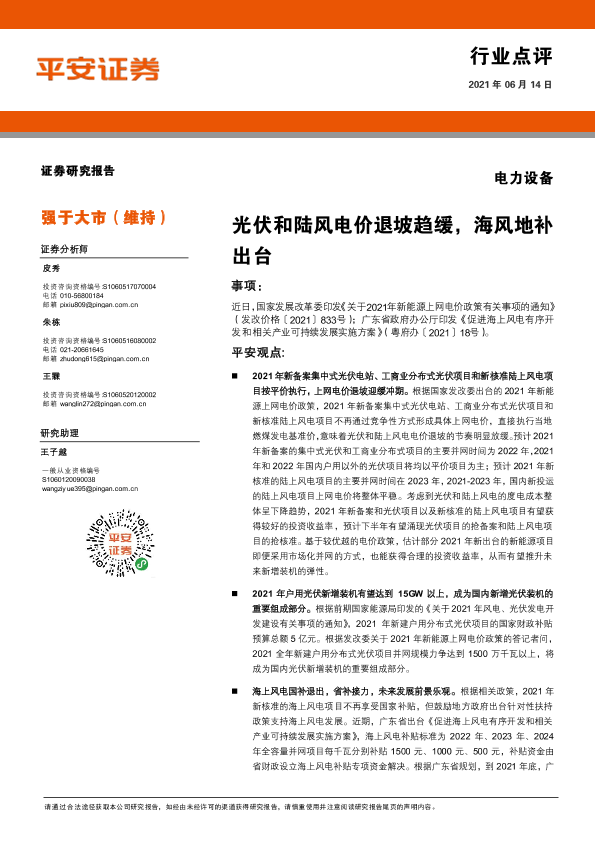 【平安证券】【20210614】电力设备行业点评:光伏和陆风电价退坡趋缓,海风地补出台-3页
