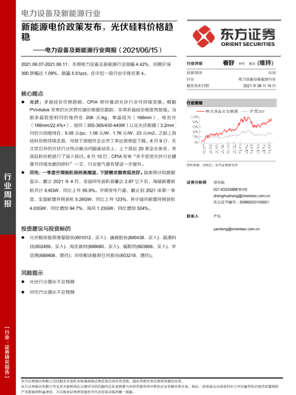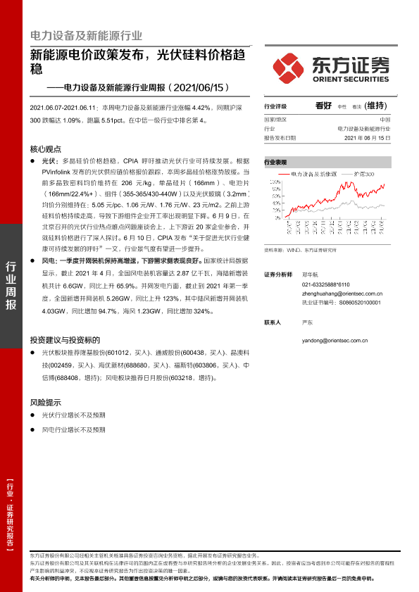 【东方证券】【20210615】电力设备及新能源行业周报:新能源电价政策发布,光伏硅料价格趋稳-14页