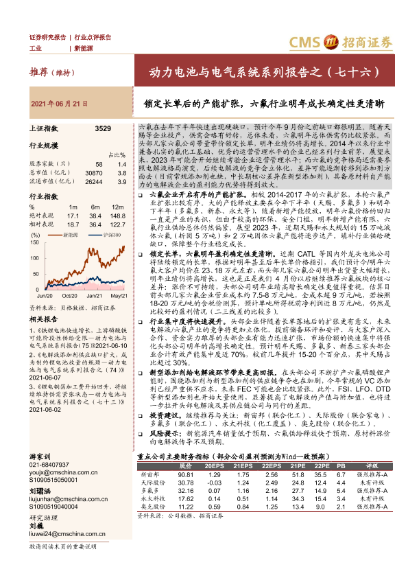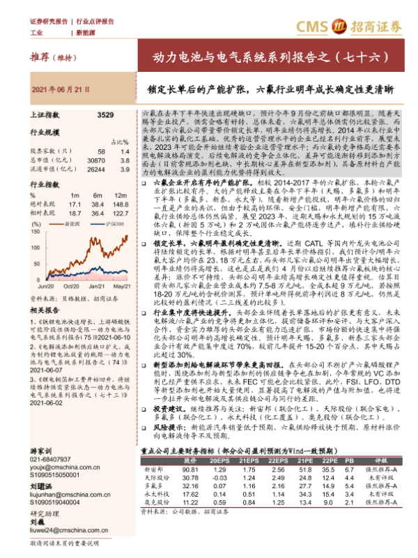 【海通证券】【20210621】动力电池与电气系统系列报告之(七十六):锁定长单后的产能扩张,六氟行业明年成长确定性更清晰-5页