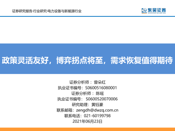 【东吴证券】【20210623】电力设备与新能源行业:政策灵活友好,博弈拐点将至,需求恢复值得期待-42页