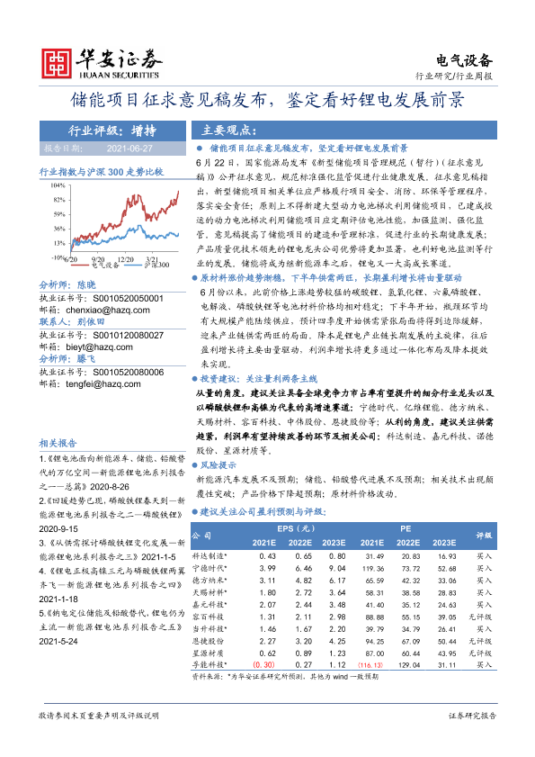 【华安证券】【20210627】电气设备行业周报:储能项目征求意见稿发布,鉴定看好锂电发展前景-21页