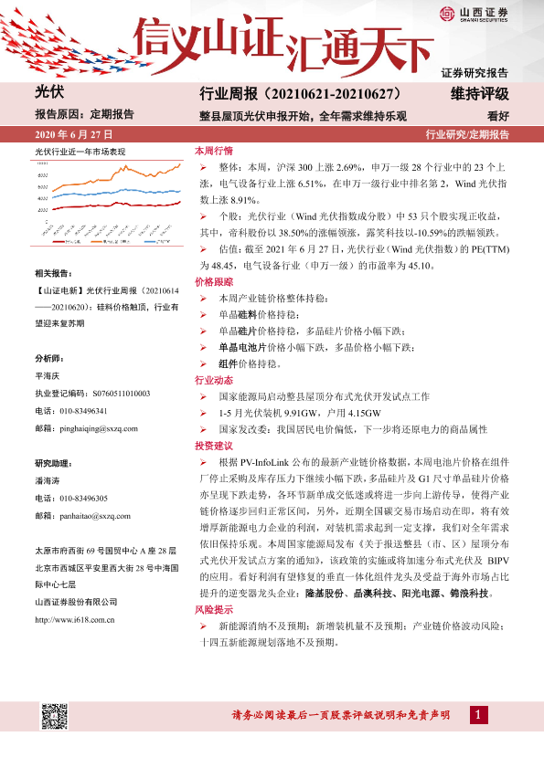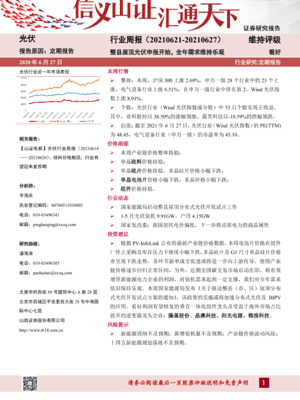 【山西证券】【20210627】20210627-山西证券-光伏行业周报:整县屋顶光伏申报开始,全年需求维持乐观-10页