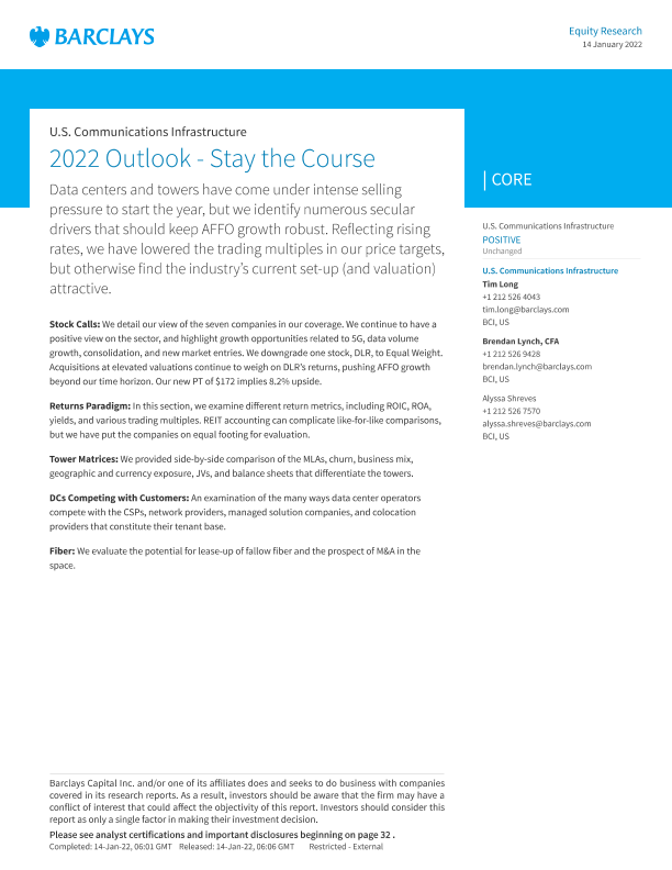 【Barclays】【20220114】U.S. Communications Infrastructure 2022 Outlook- Stay the Course-37页