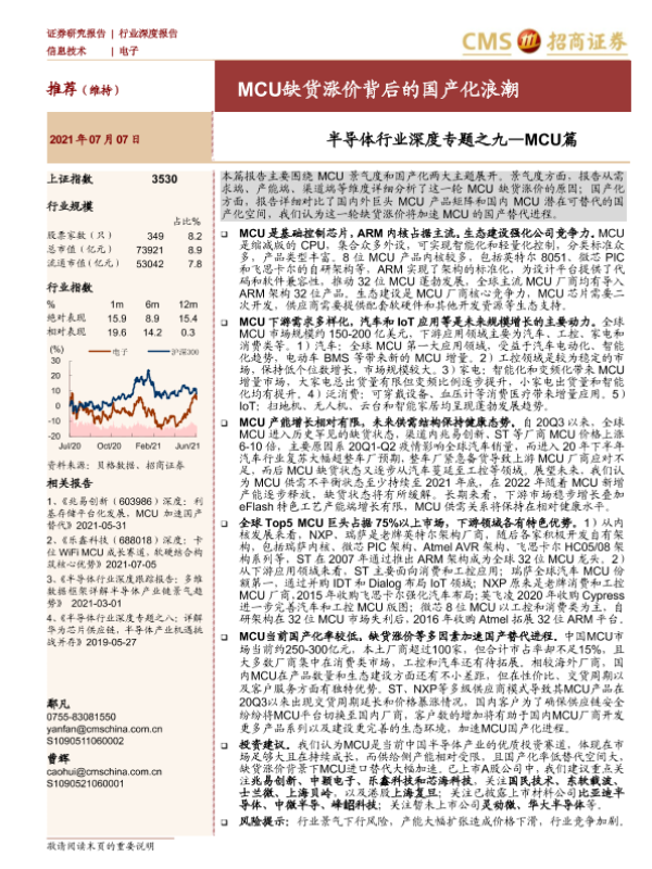 【海通证券】【20210707】半导体行业深度专题之九:MCU篇,MCU缺货涨价背后的国产化浪潮-117页