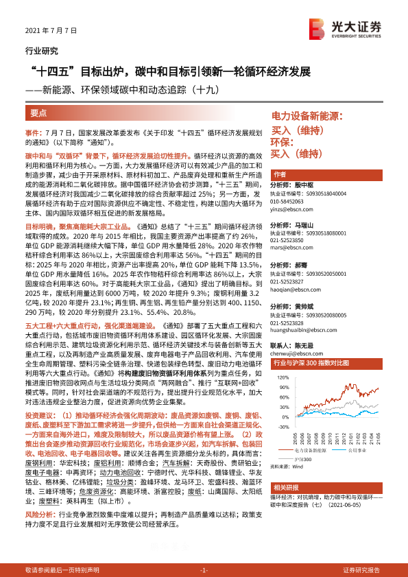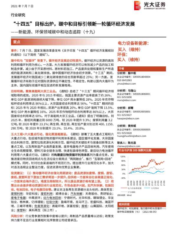 【光大证券】【20210707】新能源、环保领域碳中和动态追踪(十九):“十四五”目标出炉,碳中和目标引领新一轮循环经济发展-2页