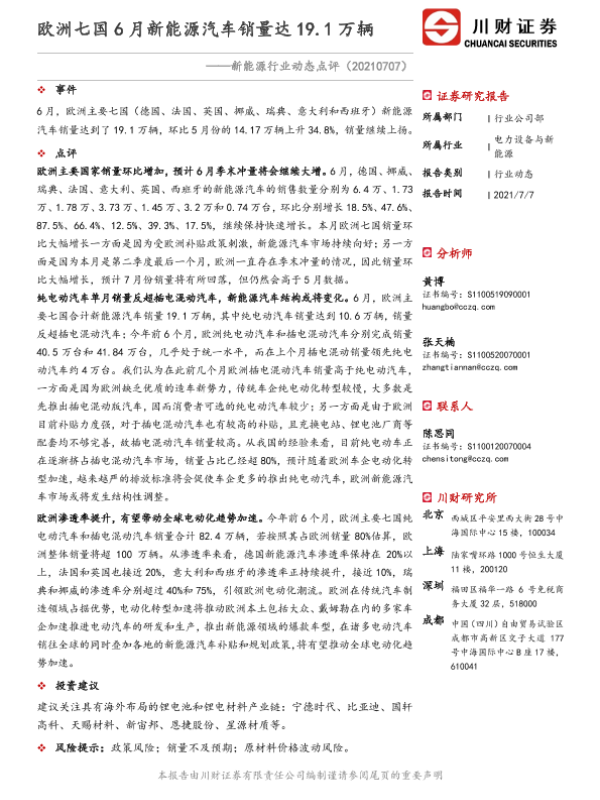 【川财证券】【20210707】欧洲七国6月新能源汽车销量达19.1万辆-2页